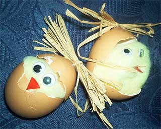 wird's gemacht: Hier nun eine Idee, was ihr aus den Eierschalen nach dem Aufschlagen der Eier machen könnt. Wir hatten Besuch, und damit meine Freundin in Ruhe "schwallern" konnte, (so nennt sie es immer), habe ich mit den Kids Osterdeko gebastelt. Als Erstes die Eierschalen gut unter fließendem Wasser von Eiresten befreien. Nach dem Trocknen ein Wattebäuschchen in das Ei einkleben. Aus der roten Pappe Schnäbel schneiden und sie auf die Wattebäuschchen kleben. Wackelaugen aufkleben und das Ei mit einer Eierschalen-Kappe ein wenig abdecken. Zur Aufhängung von dem Ei habe ich oben eine Naturbastschleife befestigt. Die Kinder hatten riesigen Spaß beim Basteln, weil sie alles alleine machen konnten (und gegen Unfälle mit der Heißklebepistole gibt es Brandsalbe). Viel Spaß beim Basteln wünscht euch, Steve |