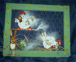 Hühnerstall im Material-Mix( Bastelarbeit und Anleitung von Beate Schwegmann-Böttcher) |