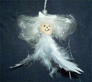 Was macht man aus Resten von Federn, Holzkugeln, Engelshaar, Bändchen, Perlmuttperlen und Moosgummi?!? Mir kam die Idee zu ganz kleinen Engelchen. Die hatte ich im letzten Jahr schon ausprobieren wollen, nun aber endlich geschafft! Als Erstes aus dem Moosgummi kleine Sterne ausschneiden. Dann auf dem Silberband 2 Perlen auffädeln und den Faden durch ein kleines Loch durch den Stern drücken. An den Stern nun Engelshaar kleben (den Silberfaden durch das Engelshaar rausschauen lassen). In das Loch der Holzperle Kleber eintropfen lassen und den Faden in dem Holzperlenloch ankleben. Von unten in die Holzperle nun 3 – 4 Hühnerfedern einschieben. Der Engel braucht nur noch ein Gesicht und fertig ist er. Es geht super einfach und schnell! Viele Spaß beim Basteln wünscht euch Bea |